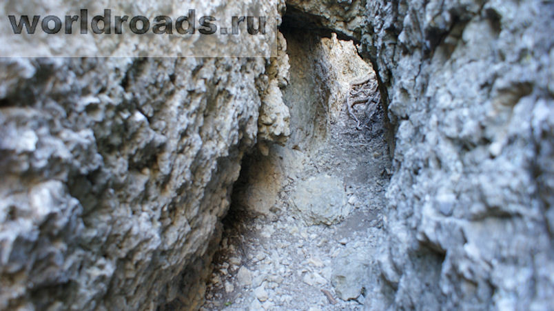 Дальше – спуск в расщелину по скальным выступам, фактически по каменным ступеням. Как будто природе было жалко не показать свои красоты людям, и она предусмотрела удобный спуск.