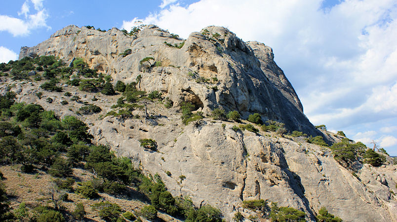 Если смотреть на скалу снизу, она кажется неприступным. Но, бродя вокруг да около, обязательно найдёте подъём на вершину.