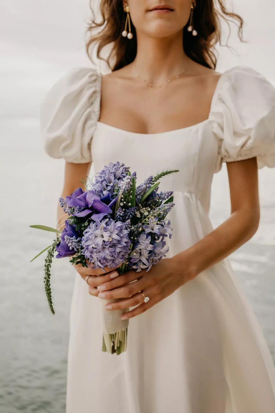 16. В букете невесты попробуйте сочетать разные текстуры – свежесрезанные и сухие цветы, растения с мелкими соцветиями и крупные бутоны с гладкими лепестками.