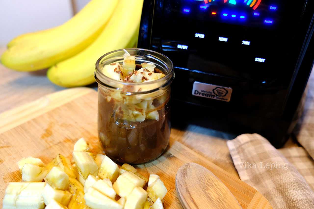 - Перекладываем авокадный мусс в пиалу или красивую баночку, украшаем мелко порезанным бананом или другими фруктами или ягодами.