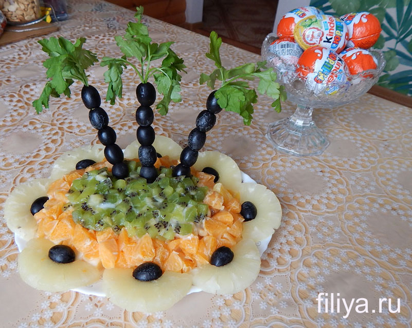 - для фруктовых блюд используйте фигурно нарезанные киви или снятую цитрусовую цедру;