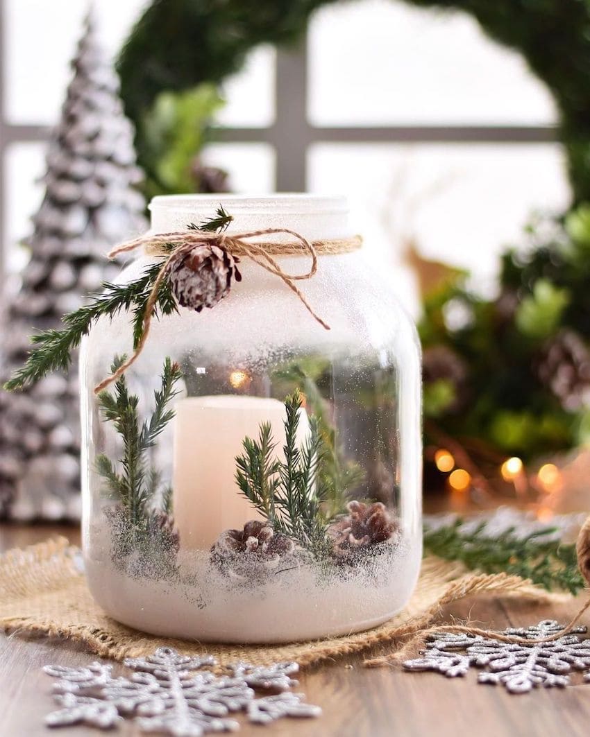 Имитации снега на банке можно добиться с помощью клея и измельченного пенопласта