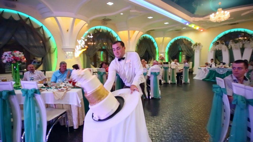 Это потрясающее зрелище лучше не откладывать на конец вечера, когда гости устанут и пределом их мечтаний будет кусочек свадебного торта. Это представление призвано разогреть и задать определенную планку, словно говоря: «Далее вас ждут не менее впечатляющие сюрпризы». Поэтому будет оптимально, если вы проведете его в течение первого часа после начала свадебного застолья.