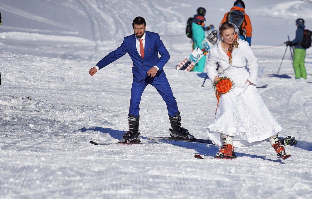 Когда свадьба проходит не в городе, а на свежем воздухе, то гостям, помимо обычных развлечений, устраивают активные виды отдыха. Зимой можно: