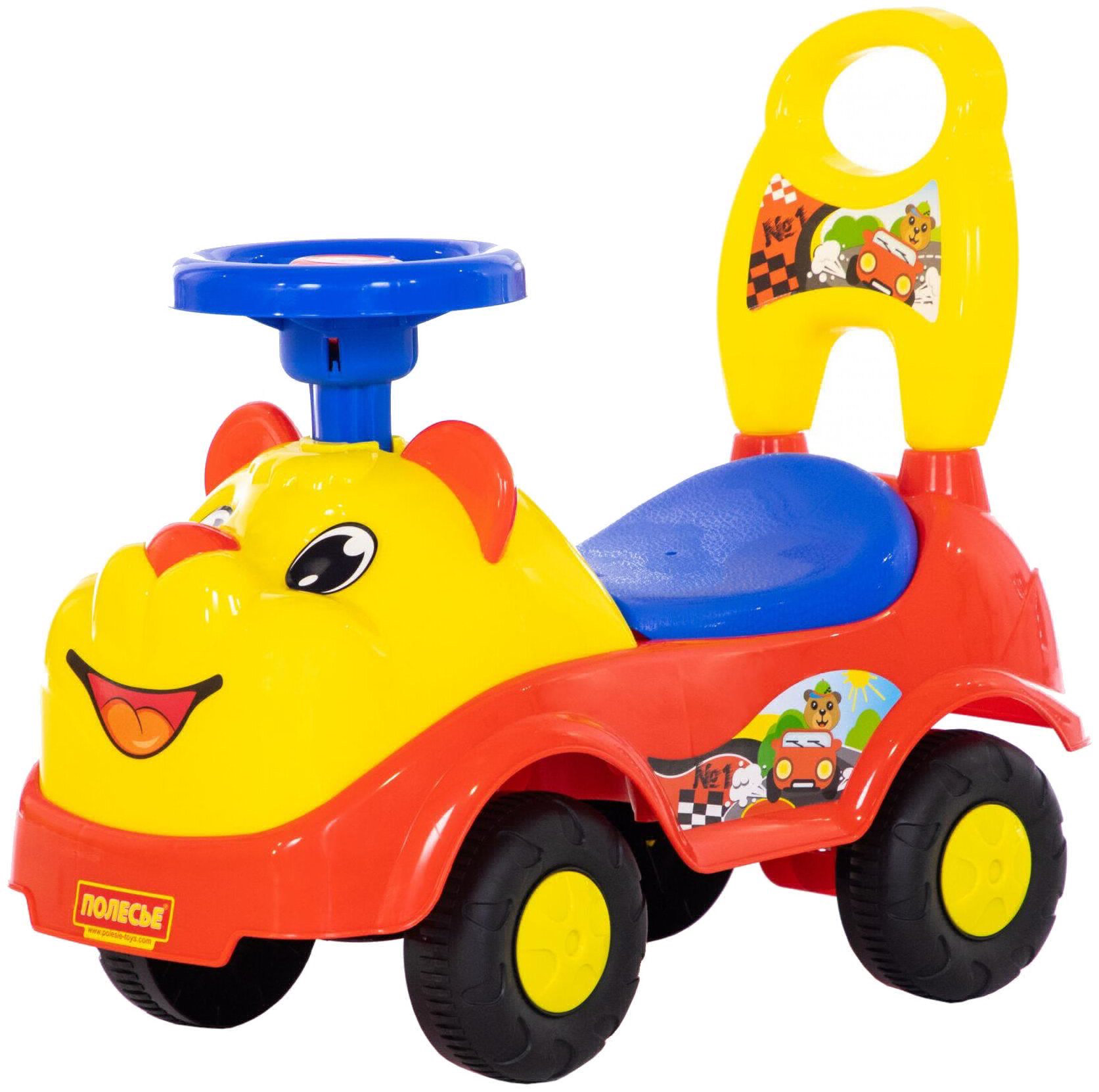 Детская игрушка, выполненная в форме машинки, мотоцикла, паровозика, лошадки или иного животного на колесиках, позволяющая катать малыша при помощи длинной рукояти.