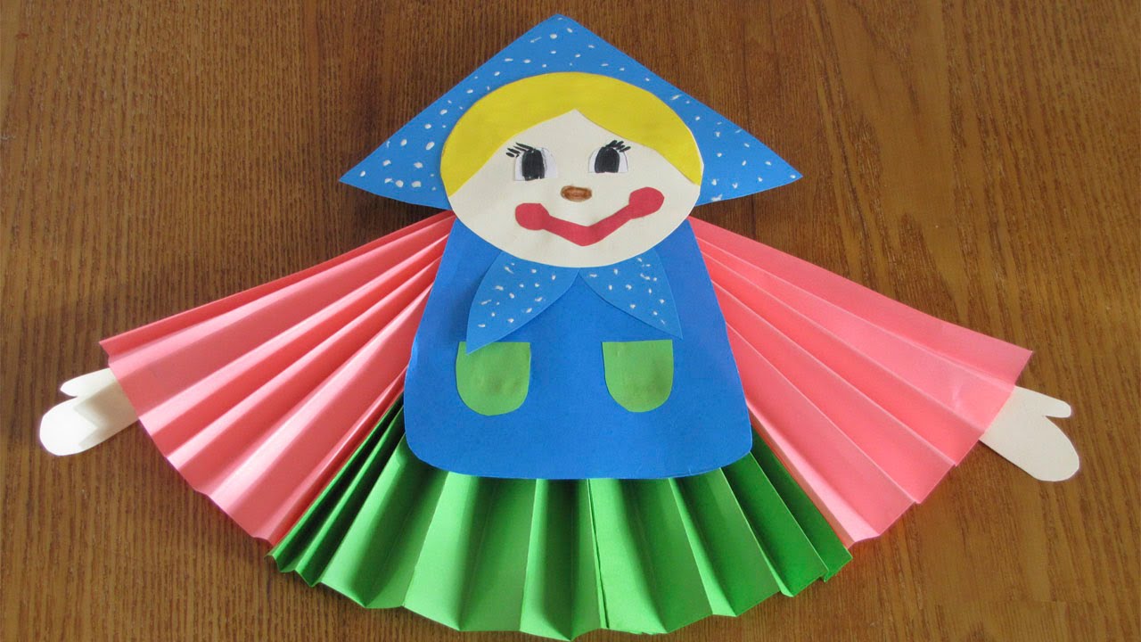 Сударыня-Барышня из складывания бумаги веером, плюс украсьте ее фартуком и косынкой, и нарисуйте лицо