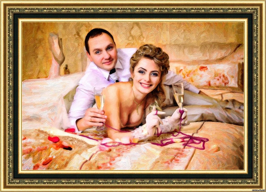 - картина на холсте по фотографии– считается одним из лучших подарков всей семье. Качественный парный портрет маслом, приятно удивит не только семейную пару, но и поразит окружающих;