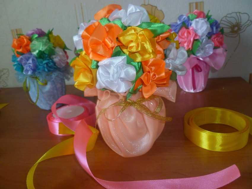 Украсьте композицию бантом из атласной ленты. Необычный букет готов.