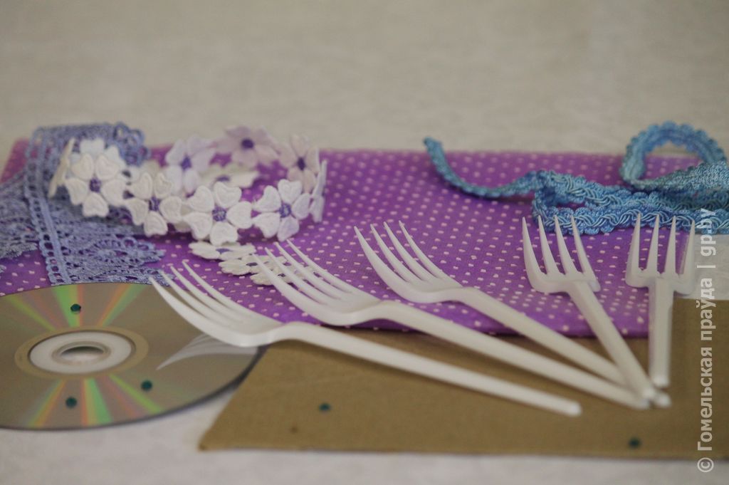 Очумельцы изготавливают веера в разных техниках из самых разных материалов, даже очень неожиданных. Веер из одноразовых вилок удивит: детали угадываются только при внимательном рассмотрении. Гармоничное сочетание лент, кружев, бусин сделают вещь привлекательной, легкой, изящной. Времени на работу уходит немного.