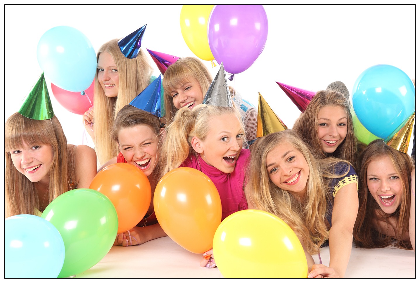 Вместо шаров, можно украсить помещение гирляндой из флажков. В магазинах огромный ассортимент таких вещей. Можете выбрать просто разноцветные, а можно найти гирлянды с надписью и рисунком. Можно украсить разноцветными лентами, бабочками. Заблаговременно купите колпачки по количеству ваших гостей. В них вы будите смотреться весело и празднично.