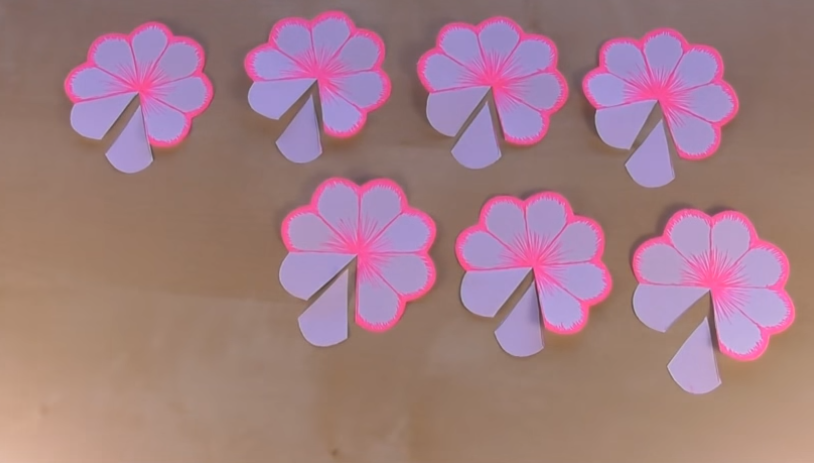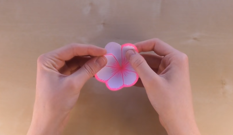Разворачиваем деталь и получаем цветок. Возьмем яркий фломастер или гелевую ручку и раскрашиваем красиво цветок.