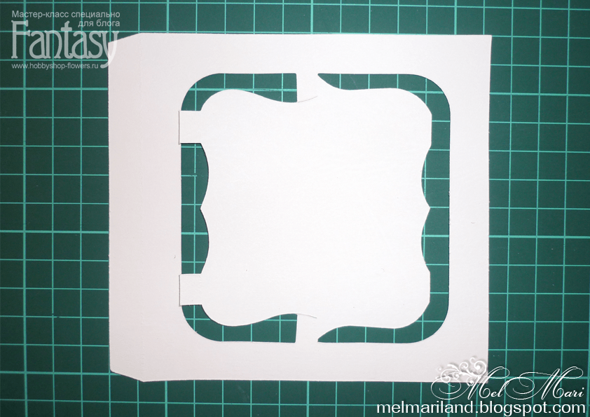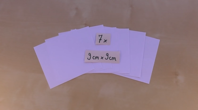 Внутри открытки у нас будут цветочки и для этих цветочков нам понадобиться 7 квадратиков из белой бумаги размерами 9 см*9см.