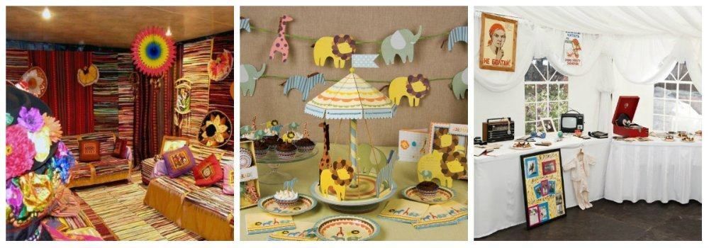 Для оригинального декора подойдут любые материалы: бумага, картон, краски, карандаши, вырезки из журналов, воздушные шары, афиши и многое-многое другое. Но одному вам скорее всего не справиться. Лучше всего, если каждый из участников вечеринки примет участия в украшении: наверняка, у одного завалялась старая гитара, а у другого мексиканская шляпа, которую уже не надевали лет десять. Не забывайте про зонирование помещения — это главная фишка на любом празднике. Зона для игр, еды, танцев и т.д. В таком случае можно обойтись табличками или небольшими элементами декора. В магазинах также продают множество гирлянд и плакатов для самых разных случаев, так что тем, кто не любит творить, также по плечу тематическая вечеринка.