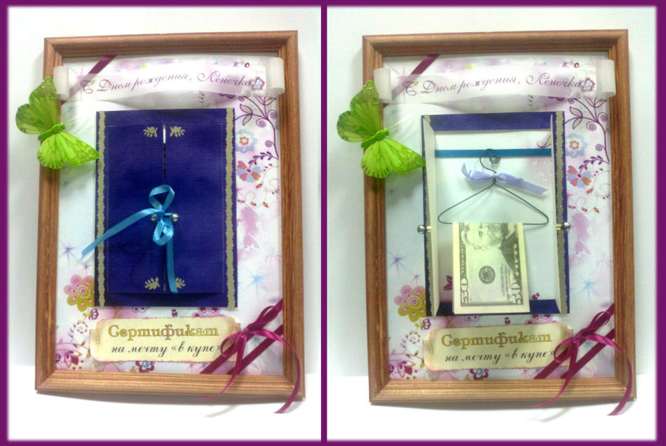 Вставляем купюры в рамку и помещаем все под стекло. Подарок готов.