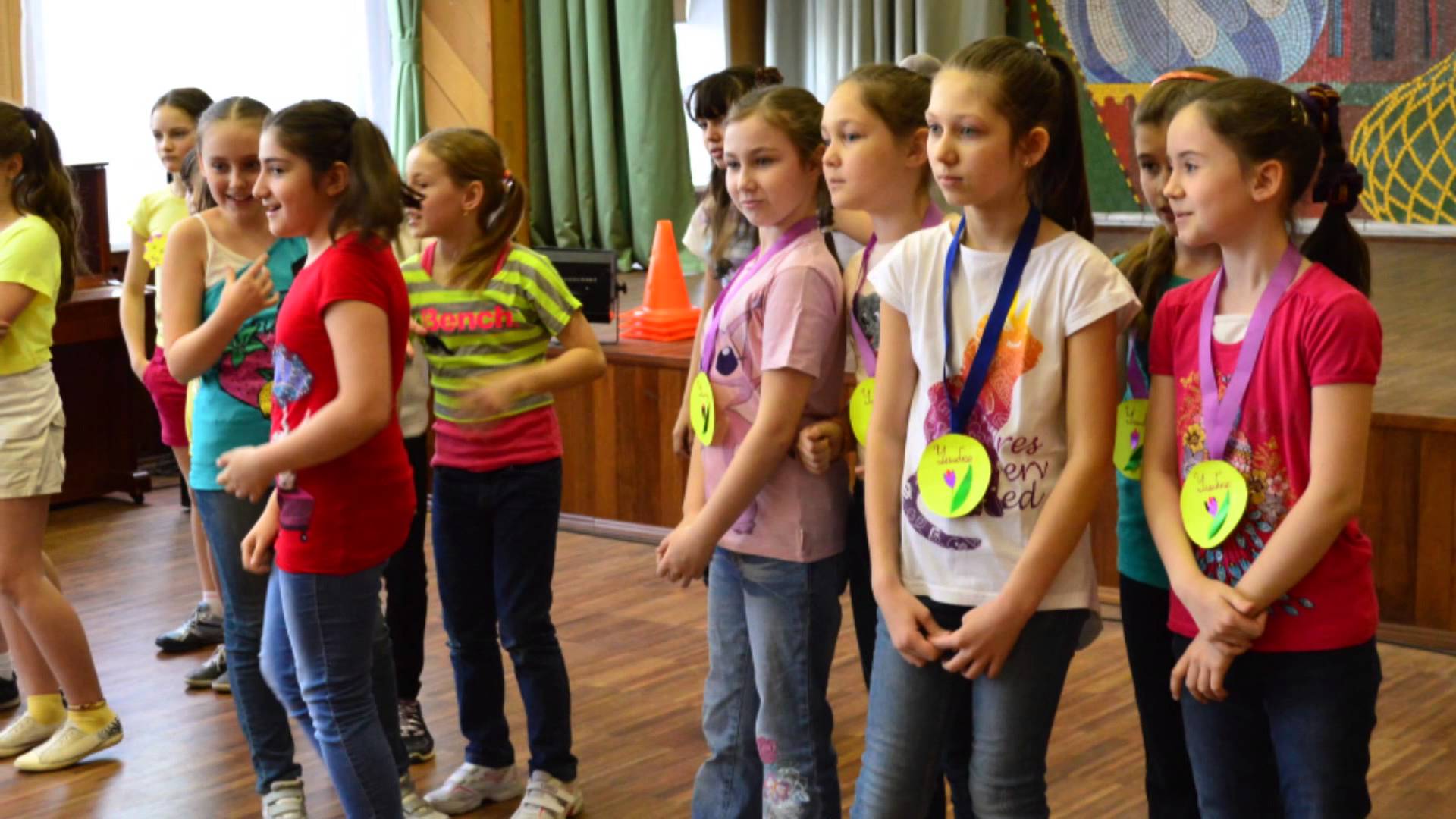 Каждой девочке из команды предстоит пронести книгу у себя на голове и передать его обратно другой участнице команды. Победят те, чья команда быстрей провернет эту операцию. Используем книгу