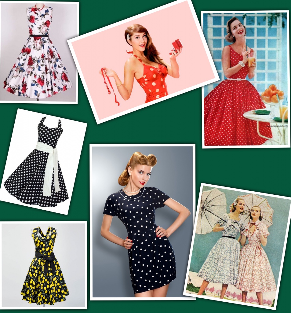 Самыми распространенными были и остаются принты в виде крупного гороха, горизонтальных и вертикальных полос, узоров из цветов и орнаментов из геометрических фигур. Своеобразной изюминкой наряда первых последовательниц новой субкультуры было то, что их подъюбники были не белыми, а цветными.