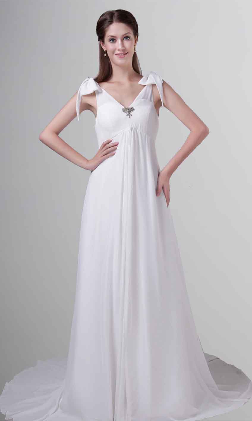 Дизайнеры создают легкие, элегантные изделия, нежно подчеркивающие красоту девушки и ее положения. Стоит присмотреться к изделиям, позволяющим подчеркнуть красивую грудь, нежные плечи. В итоге образ получится трогательным, легким.