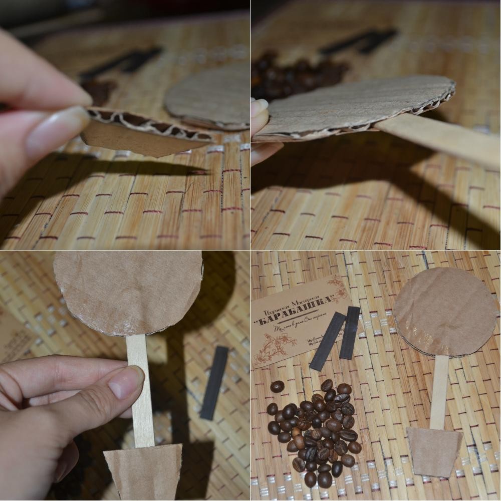 Приклеивание кофейных зерен
