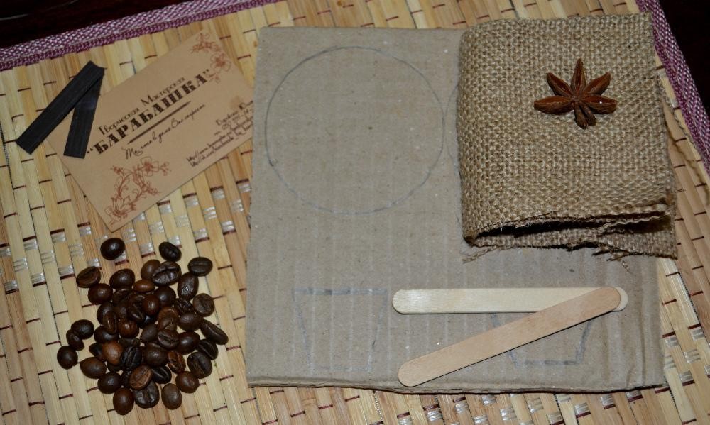 - основные элементы: кофе, клеевой карандаш, бечевка;
