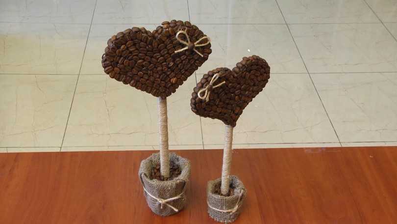 Как сделать своими руками дерево-валентинку из кофейных зёрен в виде сердца