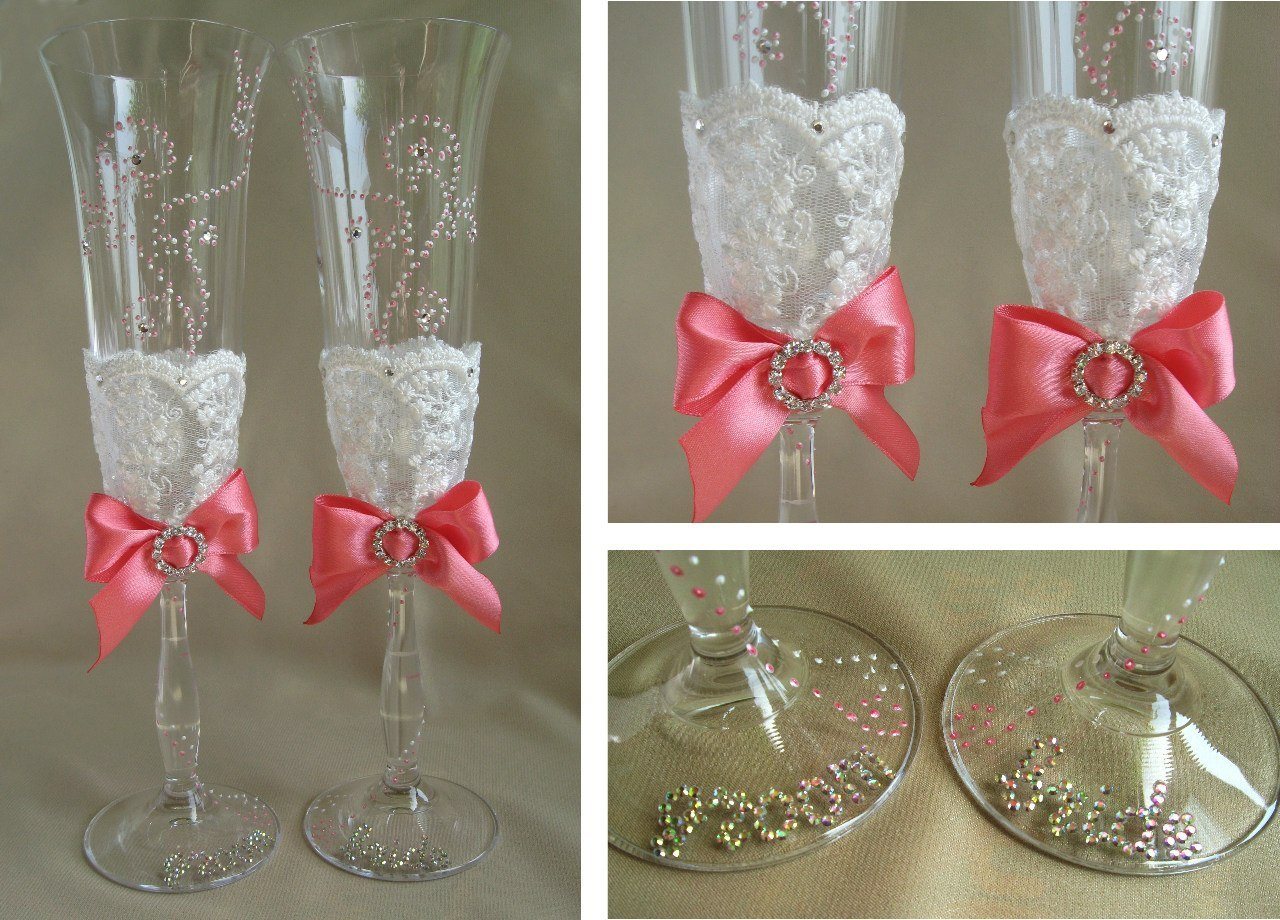 Декорирование свадебных бокалов хлопотное занятие, но оно того стоит. Созданные вами с любовью и нежностью свадебные бокалы будут дороги вам на протяжении всей вашей семейной жизни.