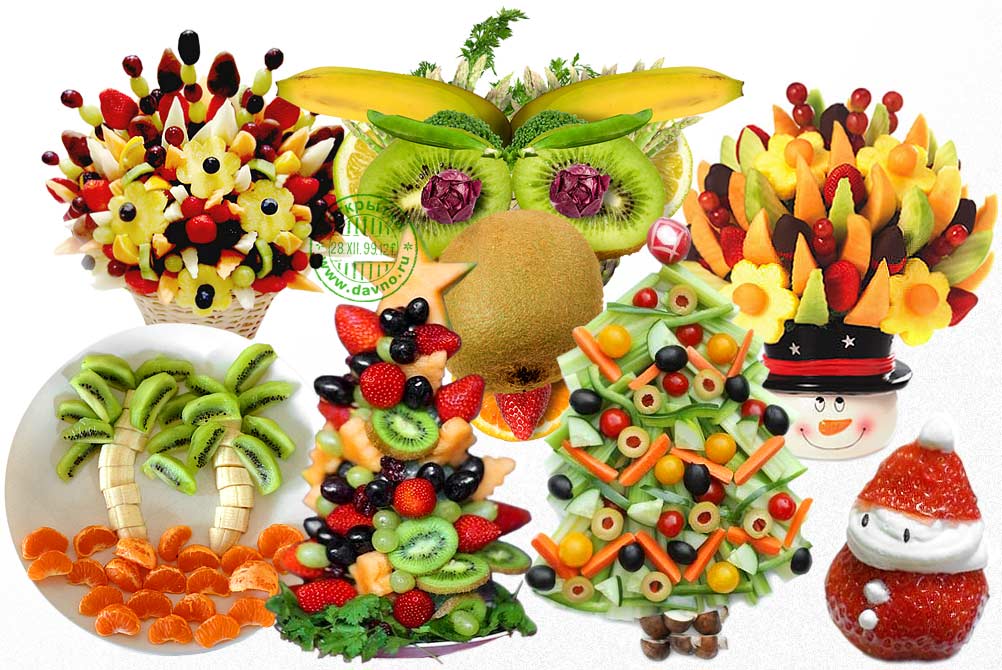 Небольшая хитрость: Чтобы сохранить презентабельность и красоту фруктов, необходимо нарезать их прямо перед подачей, так они не успеют почернеть. Также красивый вид канапе можно сохранить, периодически сбрызгивая их лимонным соком.