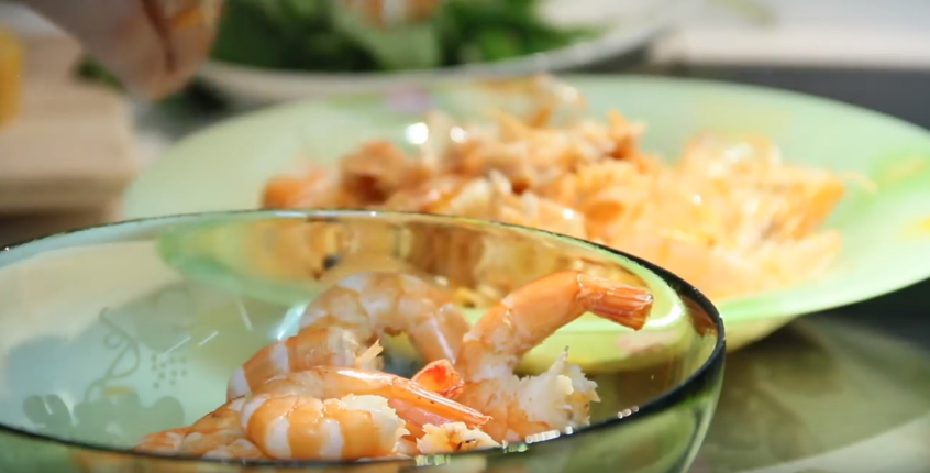 - Креветки нужно предварительно сварить, а затем очистить.