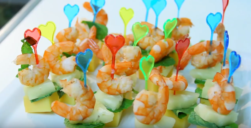 Как сделать канапе из фруктов и креветок