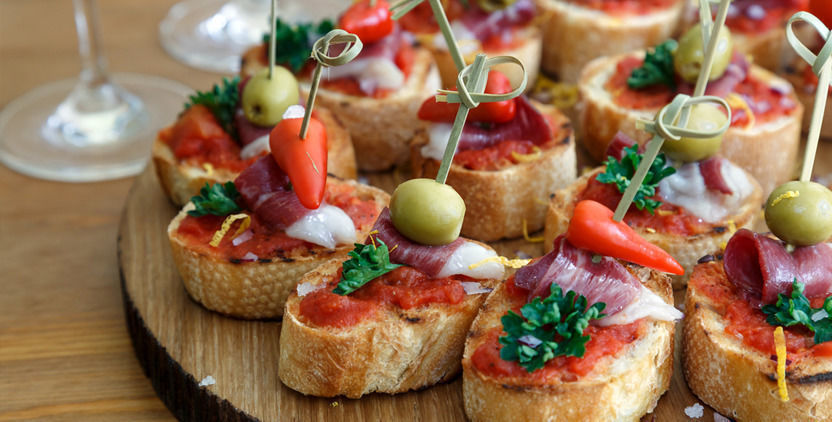 Классической парой к северо-итальянской ветчине принято считать дыню и инжир, вот и мы предлагаем побаловать себя канапе с пармской ветчиной, не нарушая «классики жанра».
