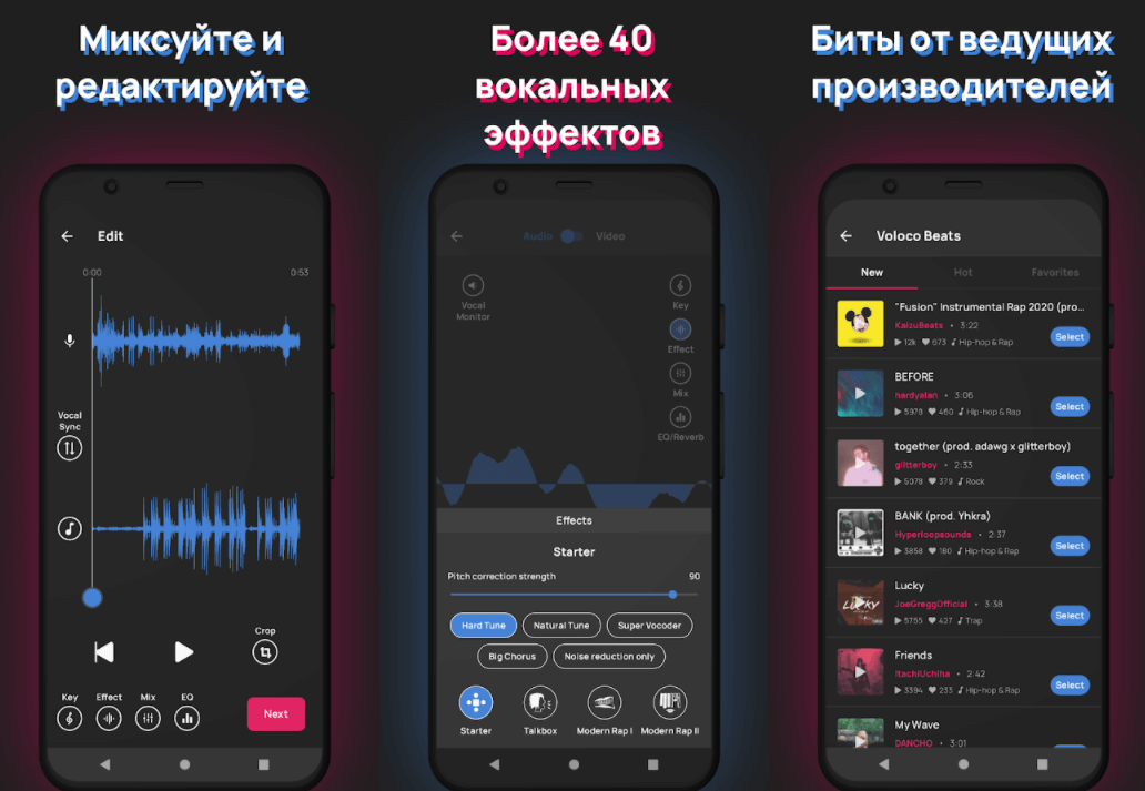 По сути, приложение Voloco предназначено для обработки голоса в реальном времени и сочетает в себе автотюн, гармонайзер и вокодер. Оно поможет вам подкорректировать свое пение в зависимости от жанра и тональности композиции.