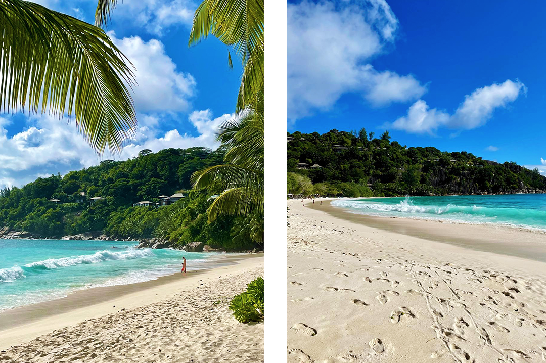 Роскошный пляж Petite Anse на территории отеля Four Seasons Seychelles.