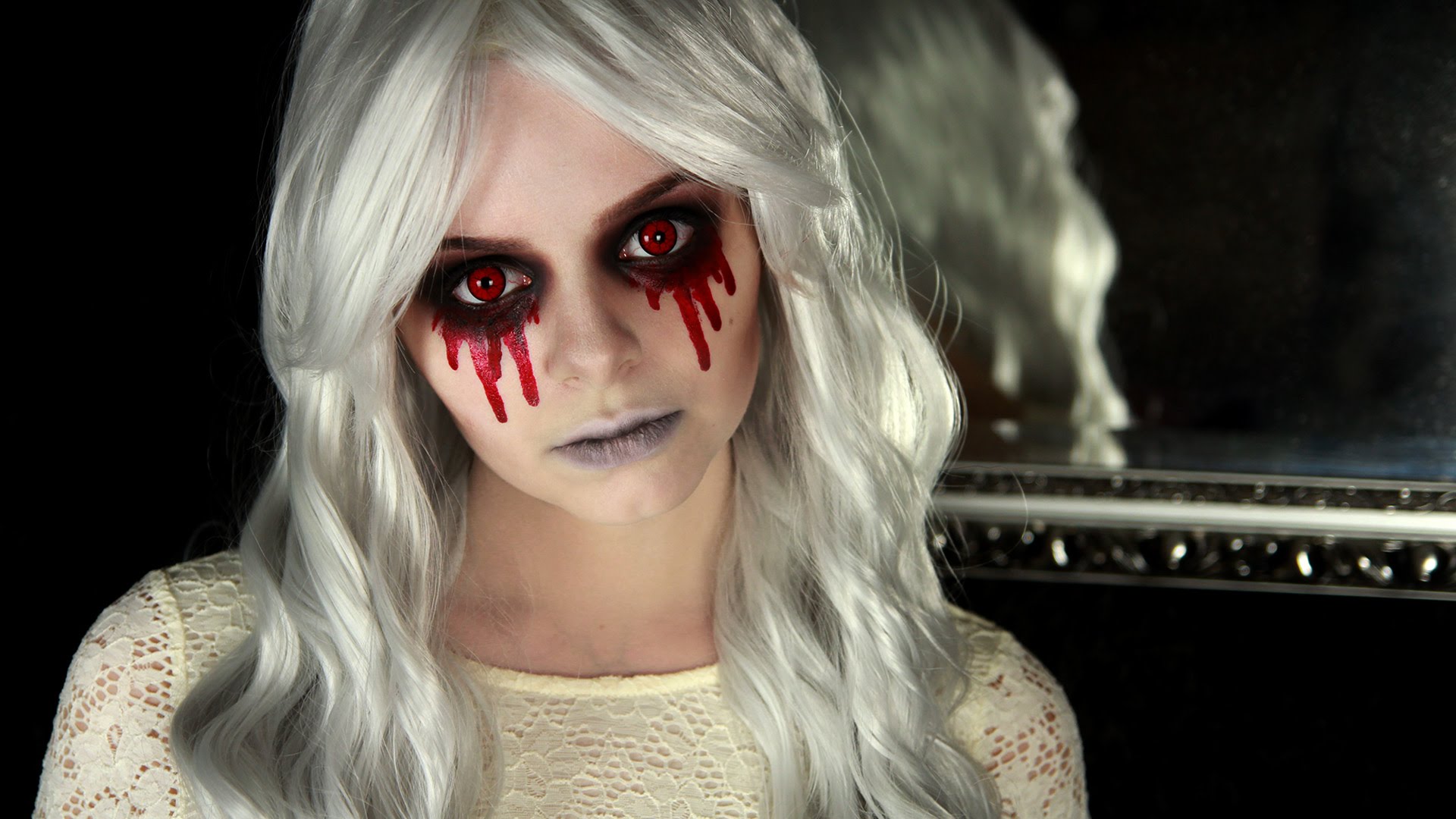 Мейкап-средствами всё необходимое вряд ли ограничится. Скорее всего понадобятся еще и такие вещи, как бинты (подкрашенные красным, они станут частью костюма медсестры) и нити для изображения «зашитых» ран и порезов, накладные клыки (без них не обойтись вампирам), линзы с белыми, красными или черными зрачками. Чтобы не оказаться в нужное время без необходимого реквизита, образ надо продумать заранее.
