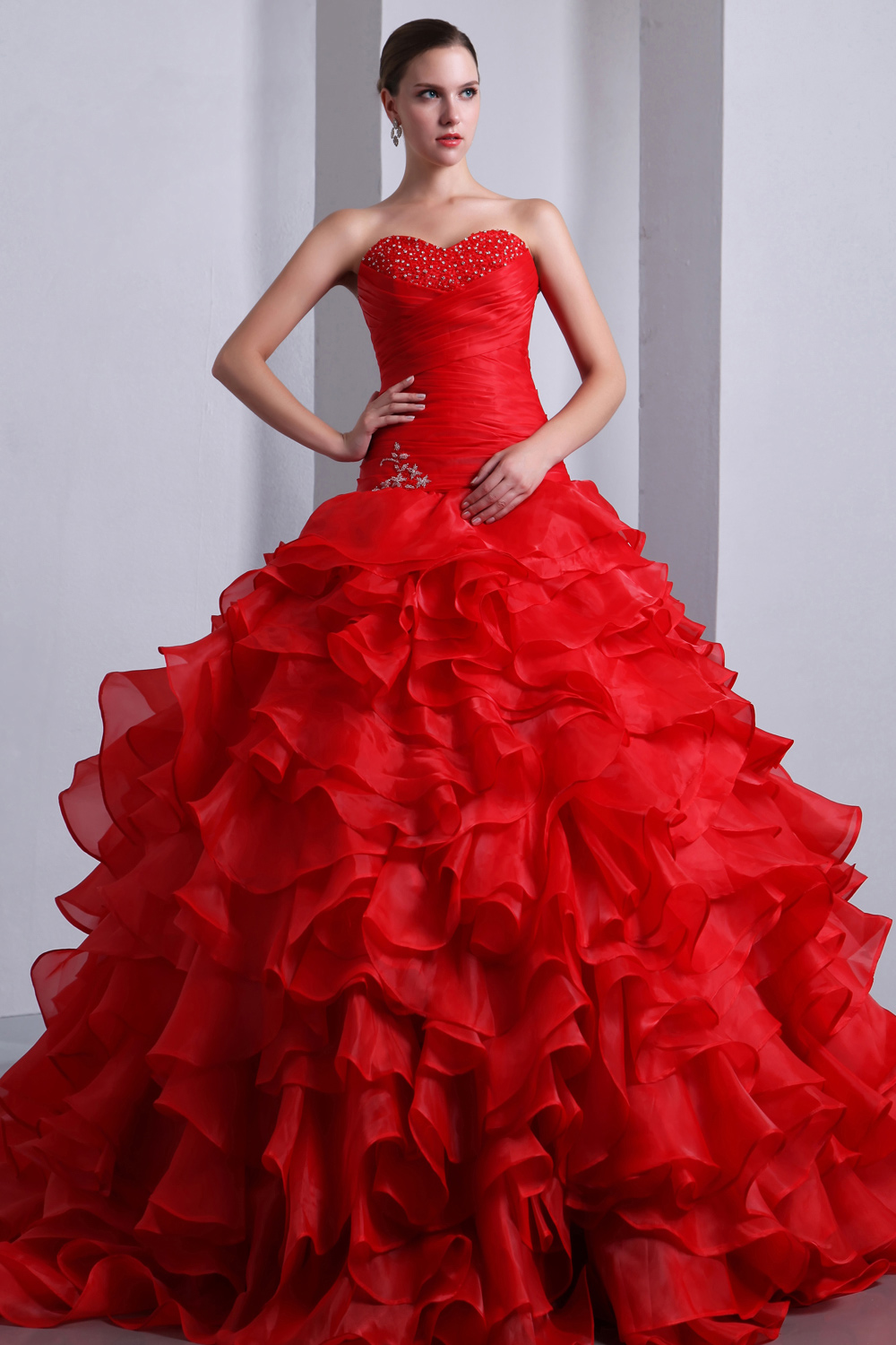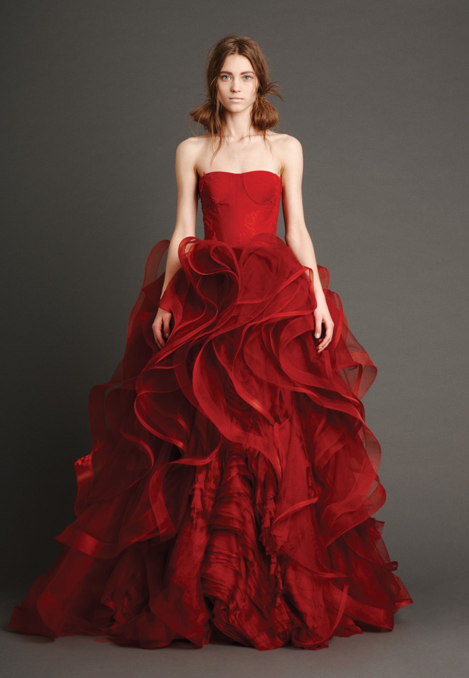 В природе существует около 25 оттенков красного цвета. Невесте нужно подобрать тон, который будет подчеркивать ее природную красоту. Выбранный цвет платья можно дополнить аксессуарами светлого или темного оттенка