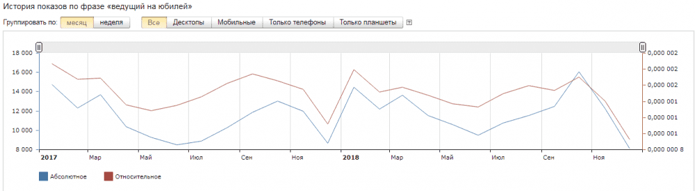 Анализ статистики запросов с помощью Yandex Wordstat поможет выявить актуальность услуги в зависимости от сезона и спланировать свою загруженность заранее.
