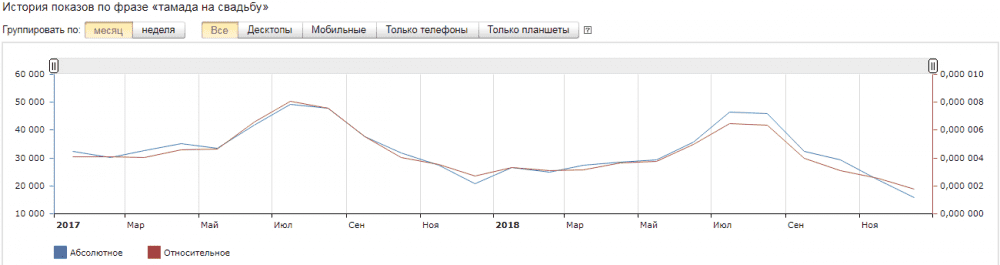 Рис. 2. Спрос на услуги свадебного тамады подвержен фактору сезонности