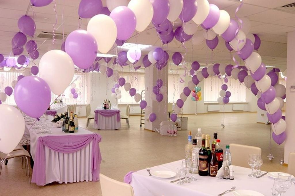 После регистрации и фотосессии гости и молодожены отправляются на банкет. Естественно, зал, в котором проводится праздник должен быть украшен. Мода на декор помещения тоже регулярно меняется. Не стоит использовать большое количество шаров. Это не значит, что от них придется отказаться. Просто стоит забыть об арках с шариками и гирлянд. В моде шары с игривыми хвостиками.