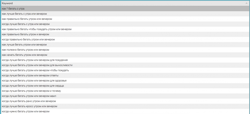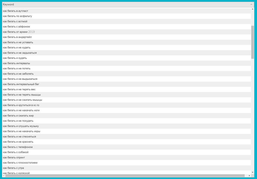 Это сервис, который собирает поисковые запросы в одном месте. Заходите на сайт и в поисковой строке вводите, например, «как бегать», и получаете сотни разных идей! Далее, следуя своей интуиции и здравому смыслу, выбирайте варианты, которые могли бы быть интересны вашей аудитории.