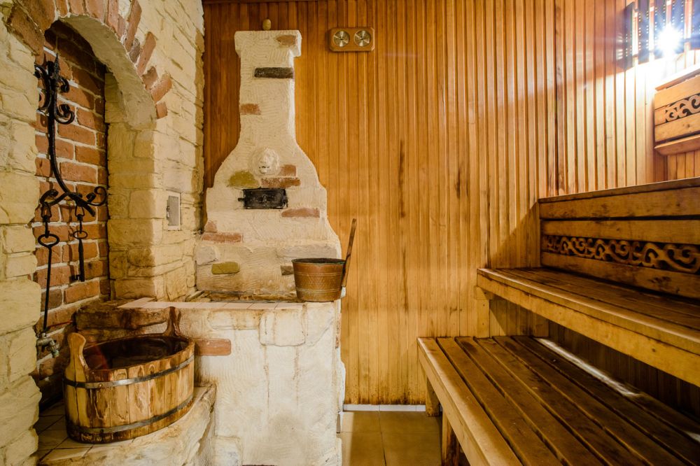 Лавки уровням пониже и повыше необходимы для того, чтобы размещаться на них по мере нагрева тела. Чем выше взбираться, тем будет жарче воздух. На лавке удобно растянуться, чтобы попариться с веничками, расслабить мышечную систему. Ушат похож на глубокий таз с ручками. Идеальный выбор древесины для ушата и черпака – дуб. Он отлично переносит повышенную влагу и служит долгие сроки. Из черпака льют воду на камни, набирая ее в ушате.