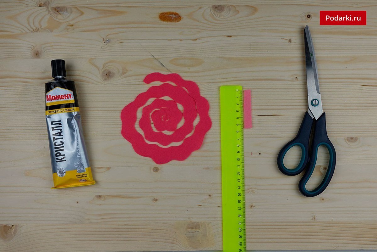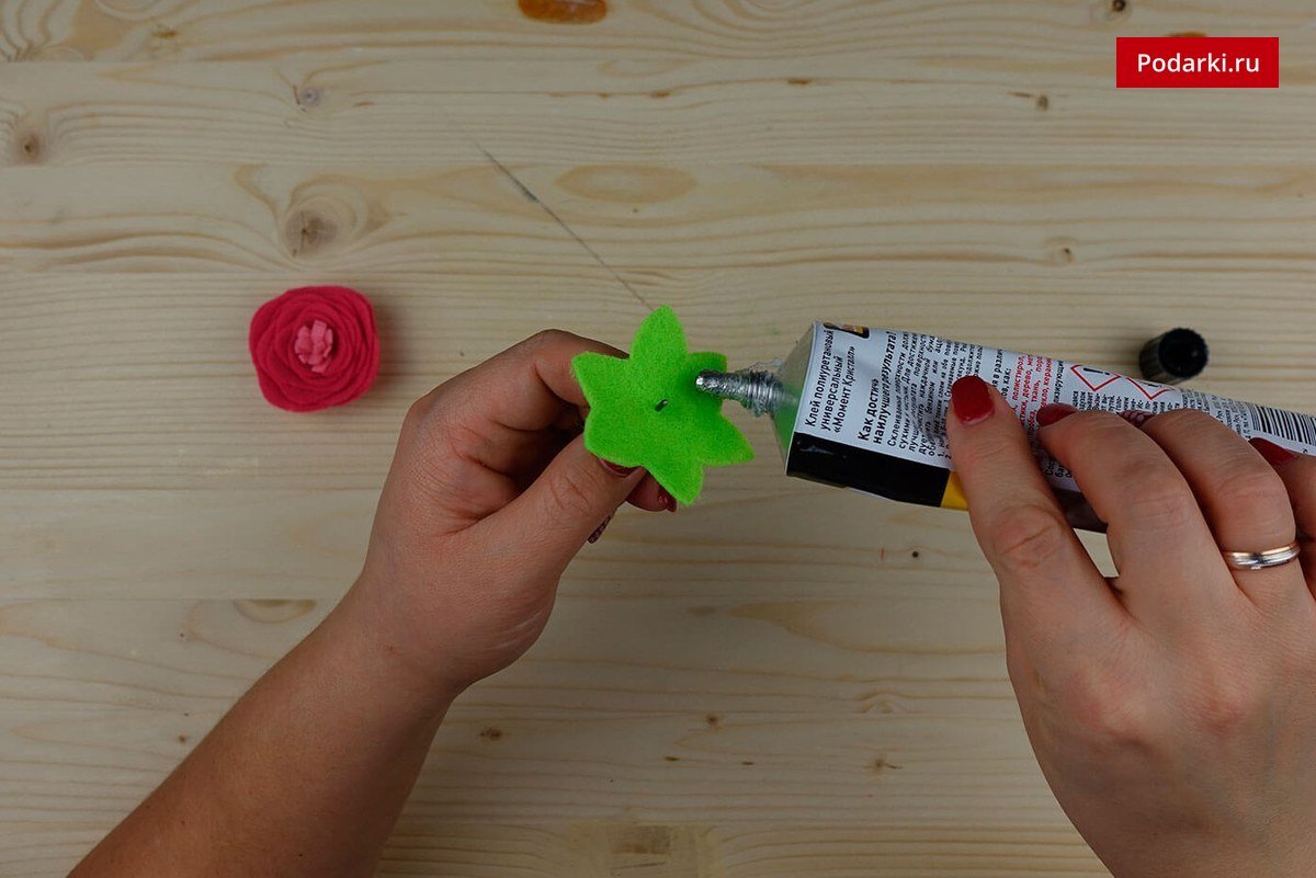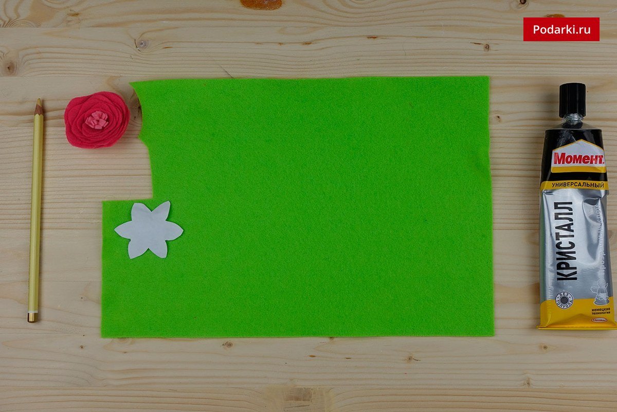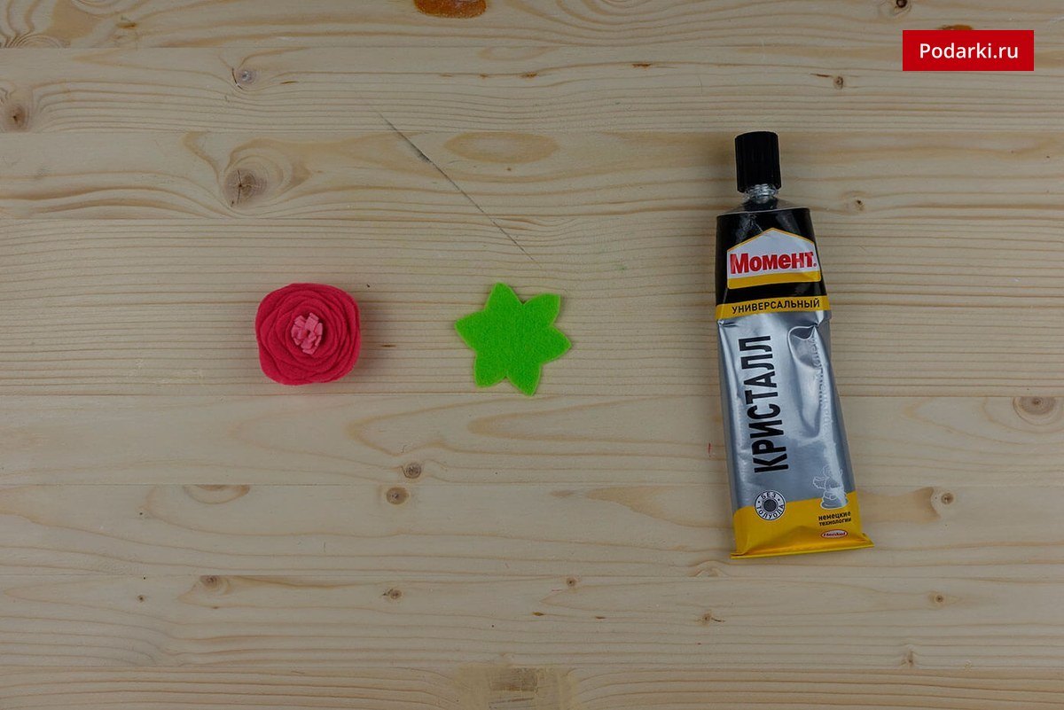 - Фетровый прямоугольник красного цвета – 1*1,5 см.