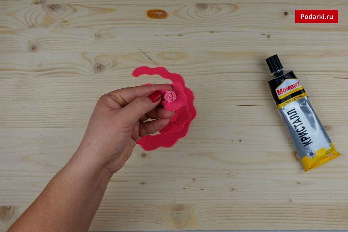Затем приклеиваем цветок.