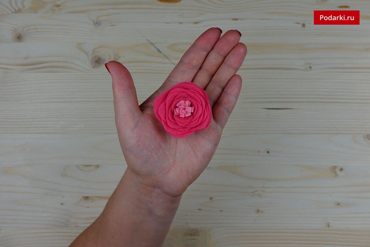 При желании приклейте/пришейте к обратной стороне бутона необходимую фурнитуру, например, булавку, чтобы сделать из цветка брошь.