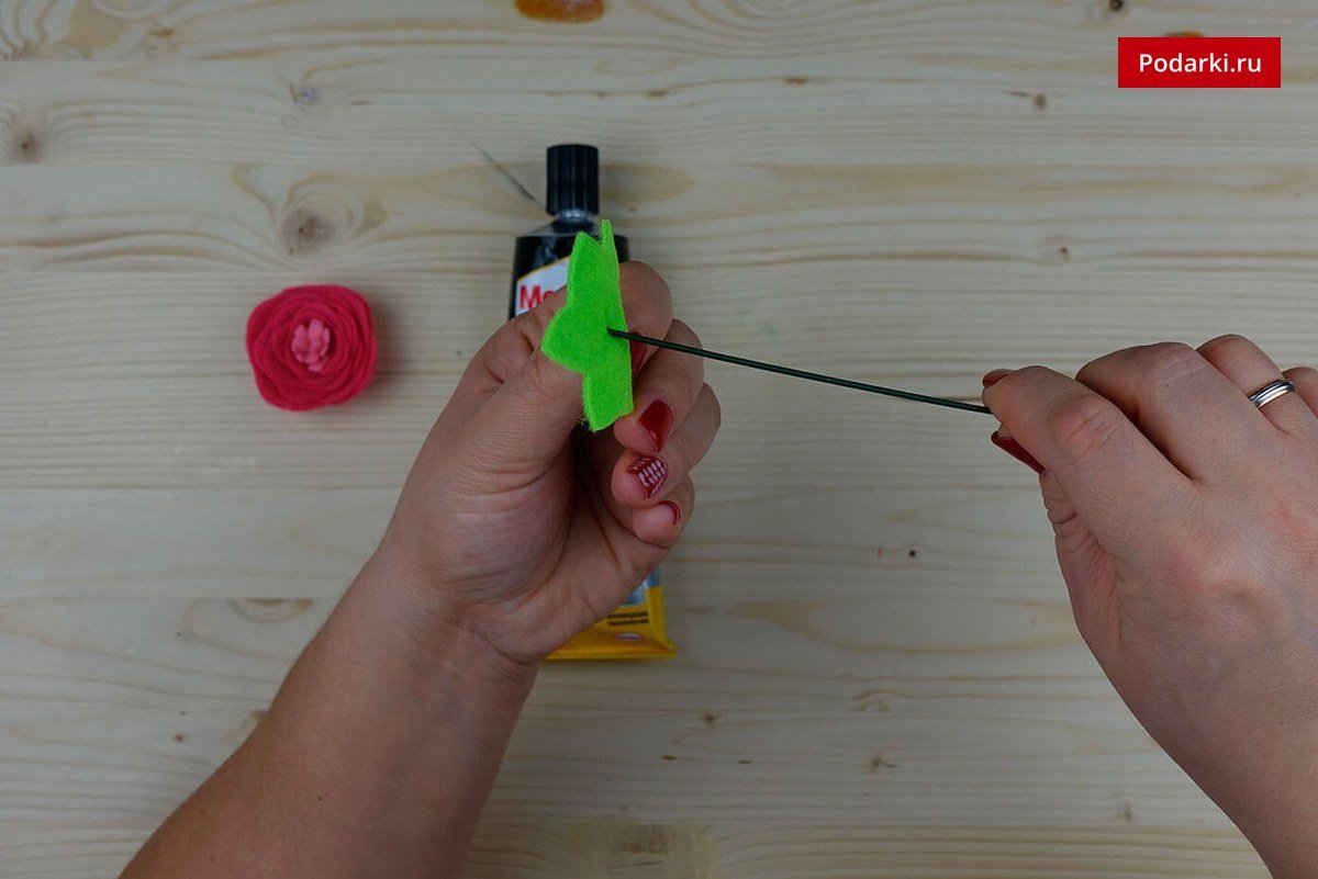 Наносим клей на проволоку с чашелистиком и аккуратно приклеиваем цветок.
