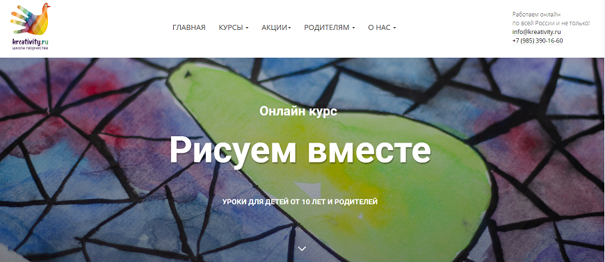 Продуманная программа занятий, сопровождение учеников помогают раскрыть дар творца, расслабиться. Достоинство онлайн-школы — бесплатный вводный уроке, куда могут попасть все желающие.