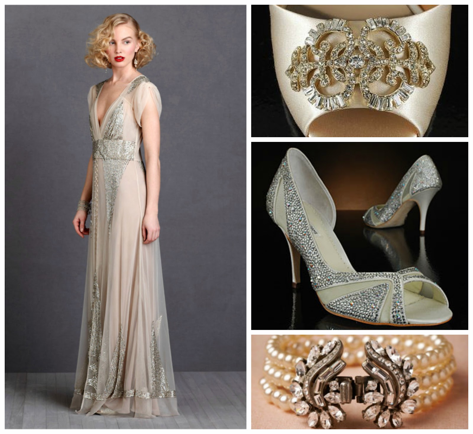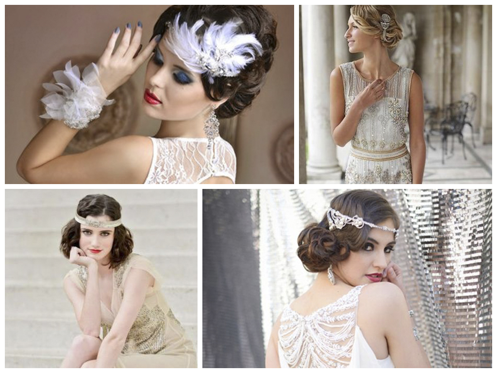 Невесте важно «угадать» с металлическим оттенком, ведь самые стильные аксессуары арт-деко – это «металлик». Что предпочесть? Тот оттенок, который сочетается с цветом кожи и волос и делает лицо «выигрышнее»