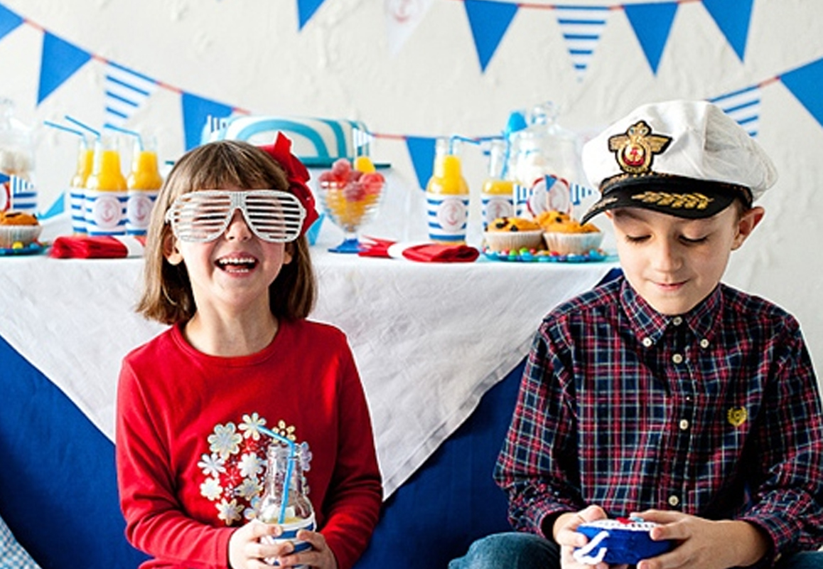организуйте фотозону. Для морской вечеринки есть много вариантов – кораблик или лодка на фоне волн, остров с пальмой и морскими атрибутами на переднем плане, капитанский мостик. Плотный картон + рисунок или распечатка.