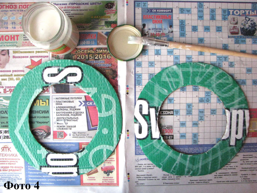 Татьяна Абраменкова показывает, как сделать венок из такой же плоской деревянной заготовки, как на фото выше (можно использовать и плотный картон):