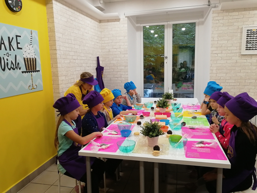“Там для наших юных кондитеров преподаватель Эля сделала заготовки и разложила их на кондитерский коврик. Встретила нас дружелюбно, повела Сашу мыть руки, а затем предложила выбрать фартук и колпак, потом присесть на место. Такой подход был к каждому ребёнку.”