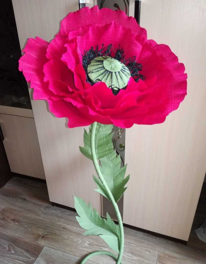 Крупные цветы из гофрированной бумаги – это красивый и нежный декор, который можно использовать в праздничном интерьере, оформлении фотозоны или жилой комнаты. В одной из предыдущих статей мы уже рассказывали, как сделать цветы из гофрированной бумаги своими руками, в частности в одном из мастер-классов мы демонстрировали, как мастерить большие розы со стебельками, а также пышные бумажные цветочки небольшого размера.