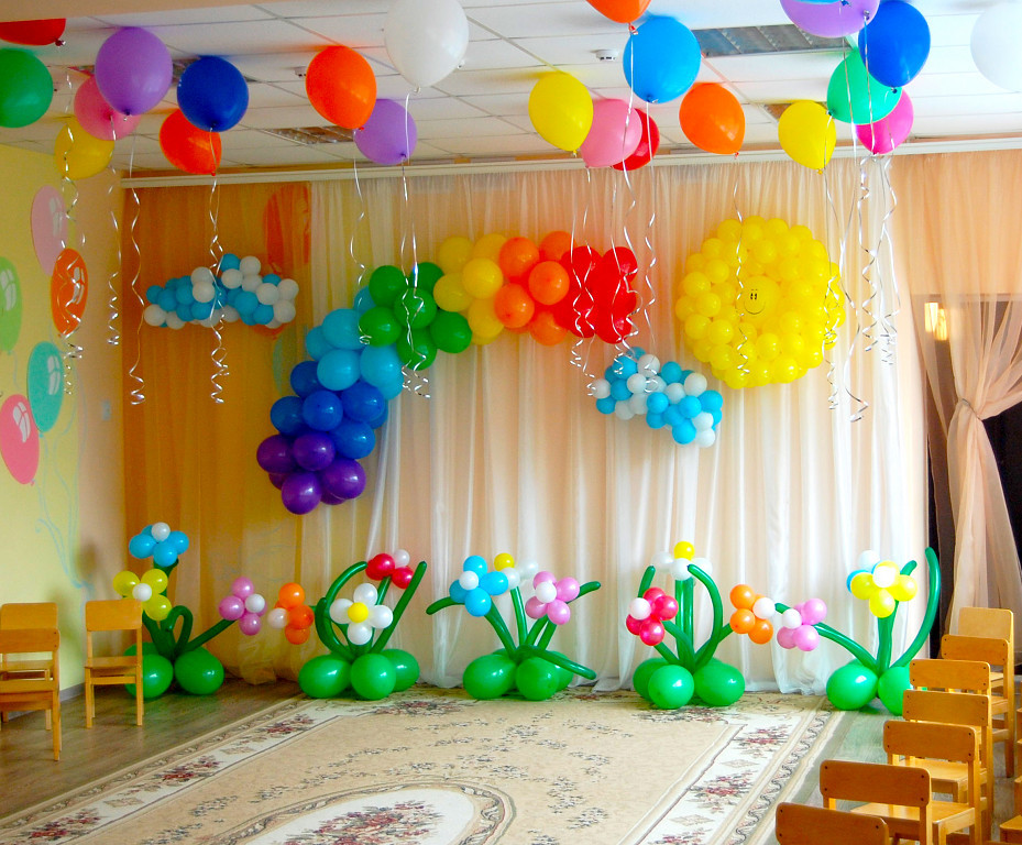 Как красиво и стильно украсить зал, группу детского сада воздушными шарами на детский праздник, выпускной в детском саду: идеи, советы, фото