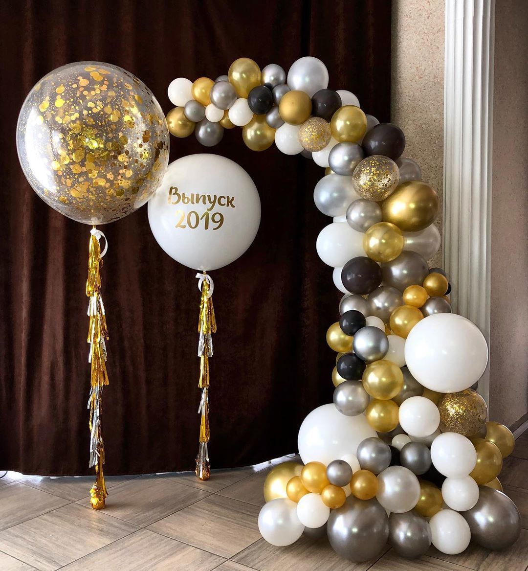 На торжество для 9 и 11 классов лучше сделать арку с использованием хромовых и перламутровых воздушных шаров. Композиция из таких изделий будет очень эффектно и стильно смотреться на вечере прощания со школой.